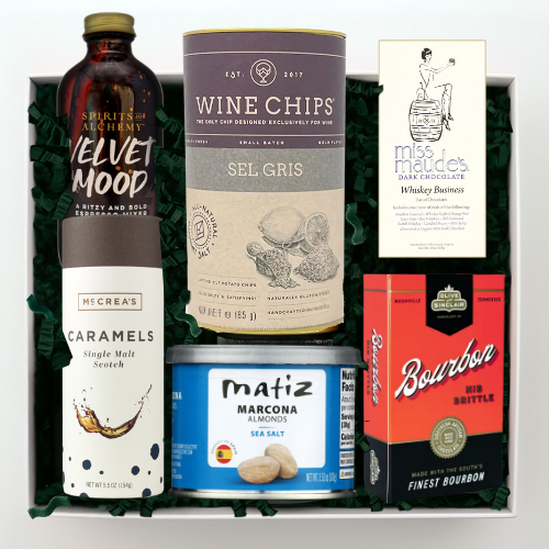 The Reserve feels like a private tasting — a layered journey of sweet, smoky, and savory notes that unfold with quiet confidence. Each item was chosen for its depth and craftsmanship: from bourbon and scotch confections to nori-dusted bar nuts and sel gris crisps. Finished with an espresso martini mix that brings it all together, this collection delivers the perfect balance of indulgence and restraint — a refined gift designed to impress the most discerning palate.